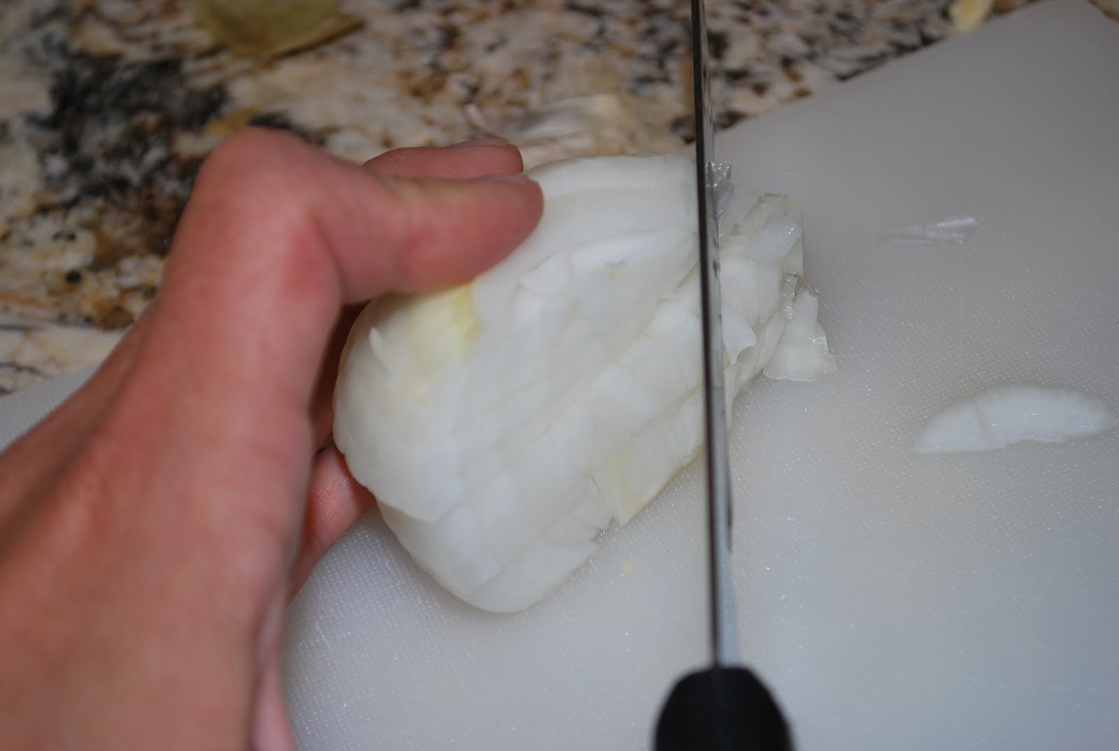 Now, I realize that most people with rudimentary knife skills can probably figure out how to chop an onion. I mean, you just chop it, right? However, if you want to really increase your efficiency, I figured out a way to speed things up and control the size of your diced onion cubes with a little more calculation involved.